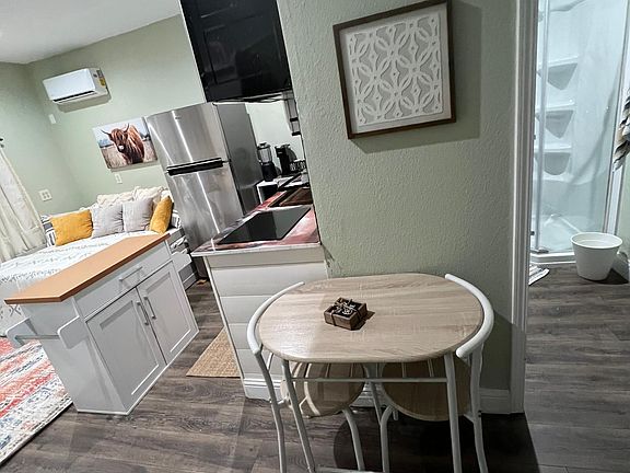 AVAILABLE L JANUARY 2nd 2023 Best fit for short and mid term stays. Minimum stay 7 days and max 6 months. Welcome to this fully furnished studio! This cute little private place is equipped with everything you need. Comfortable queen bed, plenty of storage, bathroom with walk in shower and vanity- private entrance and private spacious yard! All utilities included! Max occupancy: 2 persons Pets: ok with extra deposit No smoking allowed. Pets allowed with extra deposit.