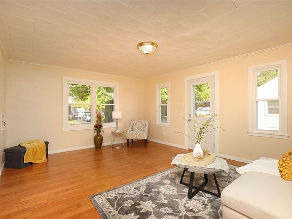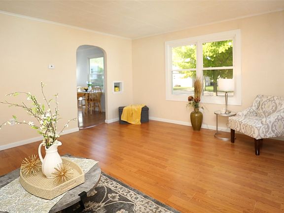 Cute as a Button and Move-in Ready!! This adorable 2 bedroom 1 bath Ranch offers Excellent Opportunities. Investment--Starter Home--Retirement Home, YOU PICK! The work has been done for you. Gorgeous Remodeled Bath, Fresh Paint throughout, Newer Roof, Windows, Doors, Furnace, and MORE! The sizable living room flows nicely to the eat-in kitchen. Both bedrooms allow adequate space for your furnishings. Laundry/Mud area off kitchen. Large Yard, Detached 1 car garage, and additional storage shed are sure to please!