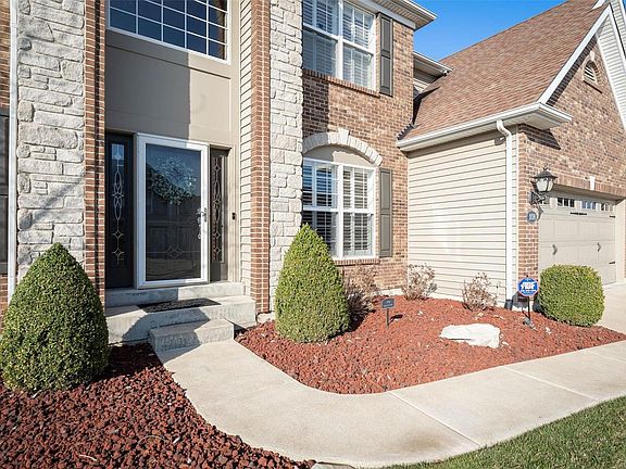 Welcome home to this gorgeous 2 story home located in the highly sought after Francis Howell School District. You immediately notice the warm and inviting neutral tones throughout when you are greeted by the beautiful dining room and living room on either side of the entryway. Walk through the library nook into the family room with gas fireplace and large bay windows. The spacious kitchen with stainless steel appliances, granite countertops, center island and butler's pantry are perfect for entertaining w/ an additional stone surround fireplace in the attached hearth room with bay window and slider. Upstairs French doors open to your master suite with custom walk-in closet and bath. 3 additional bedrooms and 2 full baths finish out the upper level. The finished basement gives you that wow factor with sound-proof theatre room, wet bar and additional entertaining space. Don't forget the large patio and fenced in backyard with professional landscaping, perfect for kids and pets to play.
