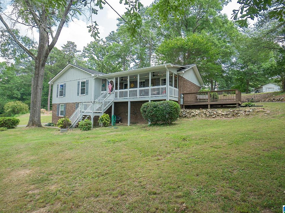 Sit on your front porch while sipping your morning coffee and enjoy the beautiful lake view! This home offers four bedrooms and two baths, bonus den downstairs and sits on one full acre. Laundry hook ups both upstairs and downstairs. The basement offers an additional area for walk in storage. Beautiful lush trees give your home privacy and shade. Circle drive completely around the house for main level back entry or basement parking. Lake access for fishing and other activities. Conveniently located to I-20, Grand River Shopping Center, Buc-ee's and Bass Pro Shop.