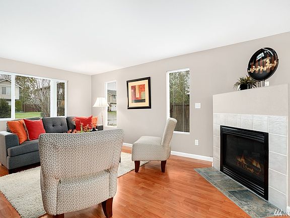 New crisp and modern paint throughout, bright and spacious open floor concept from kitchen to great room, inviting dining room with breakfast bar and backyard access perfect for entertaining, new carpet in bedrooms, private bonus room, stainless steel appliances, gas fireplace, updated lighting fixtures, new efficient hot water heater, fully fenced back yard and an open sky view with a peekaboo of the beautiful Cascade Mountain range