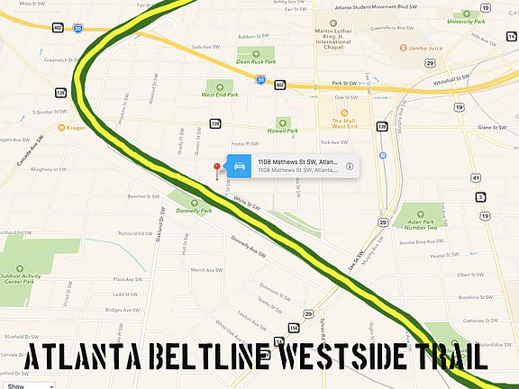 Four sides brick home in a quiet section of the West End directly on the paved portion of the Atlanta Beltline. House is spacious with five bedrooms and room to grow with an unfinished basement. Original heart pine flooring, fire places, arched doorways, butler's pantry, solid bones. Great street and neighborhood with renovations taking place in every direction. West side belt line is less than a year from opening with three paved miles from Adair Park to Washington Park and this house backs up to the middle section. Sq footage in tax records does not reflect second floor addition. House is to be sold "as is". Proof of funds required for all offers - wholesalers will be weeded out.