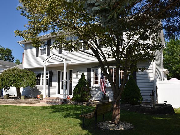 Beautiful landscaping welcomes you to this immaculately kept Colonial. Looks can be deceiving! This home offers 3,040 square feet of versatile living space plus additional space in the partially finished basement with home theater system. Home features 5 bedrooms with 2 full baths and the option of having a master bedroom on the first floor offering a private retreat. Living room features soaring vaulted ceilings with skylights, wood burning fireplace, which was re-pointed last summer and custom wet bar. There is a billiard room adjacent to the living room with the included pool table! Formal dining room, kitchen with upgraded appliances, Corian counters and is open to the family room with vaulted ceilings, skylights and custom built-ins. Beautiful Travertine tile throughout foyer,