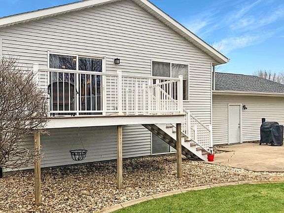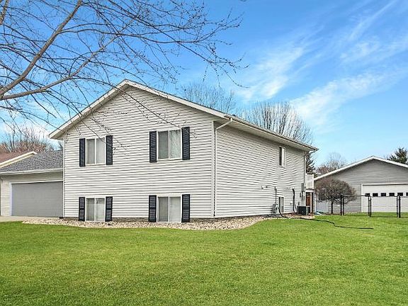 MOVE ON INTO YOUR NEW HOME where the remodeling updating has already been done for you. Need extra garage space? Want an open kitchen dining living space? Want a fireplace? Want a fenced in yard and a deck to enjoy a cup of joe? Then this is your new home! Simple Safe Security System and appliances will stay with this 3 bedrooms, 3 bathroom home which has an attached insulated heated 2 car garage. PLUS a 26x32 detached insulated 2 car garage for the recreational vehicles. Recent updates in past year include new fencing, which has a double gate large enough for vehicle entrance, complete remodel on owner's suite bathroom with new tiled walk in shower, vanity toilet, new overhead door, updated light fixtures. Roof was installed in 2019 and home underwent full remodel in 2014. Enjoy the electric fireplace, cherry cabinets, owner's suite, loads of closet storage space and so much more. Concrete curbed landscaping. Local contractors were used for the updates. Call for your showing today!