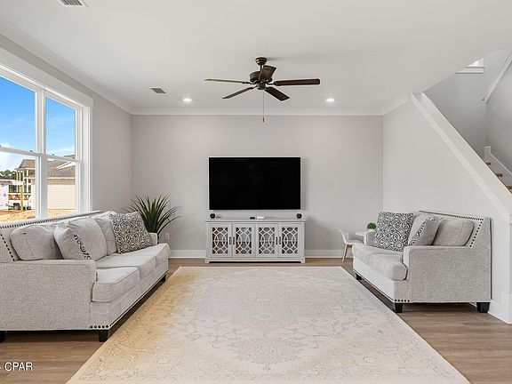 CURRENTLY UNDER CONTRACT, SELLER WILL CONSIDER BACKUP OFFERS. This captivating two-story residence features the Madeira floor plan crafted by the renowned Harris Doyle. Meticulously designed, this home features 4 bedrooms, 2.5 bathrooms, a versatile formal dining room or flex space, and a 2-car garage, offering the perfect balance of comfort and style. As you step inside, the freshly painted interior bathed in natural light creates a welcoming atmosphere. Every detail of this home exudes quality, from the luxurious vinyl plank flooring to the spacious loft upstairs. Storage is ample, including a sizable area under the stairs for seasonal decorations. The heart of the home is the expansive living room and kitchen, adorned with stunning quartz countertops, crown molding, a tasteful herringbone backsplash, and modern stainless steel appliances, including a state-of-the-art touch screen refrigerator and a 5-burner gas range.