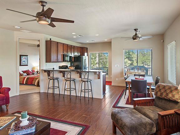 Look no further for your 3 bedroom 2 bath townhome located in the center of Flagstaff. Built in 2013, this SINGLE LEVEL floor plan is the most popular in the community. Built with quality by Miramonte, this home has Central AC, kitchen granite counters, gas range with convection oven, tile surround fireplace, split floor plan, ceiling fans, walk in shower in the Master, and best of all, an extended Trex deck with a beautifully landscaped backyard complete with paver patio. Need a little extra storage? You will not believe the space in the crawlspace. No neighbors behind you in this home, the backyard fence borders the wooded HOA land for privacy! Absolutely pristine and move in ready. Low HOA is only $168/quarter. Come take a look for yourself before its gone