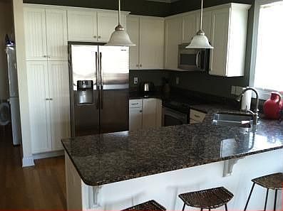 Gorgeous 4 bedroom 3 full bath condo at Carolina Beach. Hardwood floors in all living areas and Master Bedroom. Upgraded Berber carpet in bedrooms with tile in baths. Granite countertops in kitchen with stainless steel appliances. Unit features high ceilings and fans in every room. Master suite offers private deck with spa like bathroom featuring a jetted tub and double vanities. Out door shower available with off street parking underneath unit for 3 vehicles. Unit will come furnished.