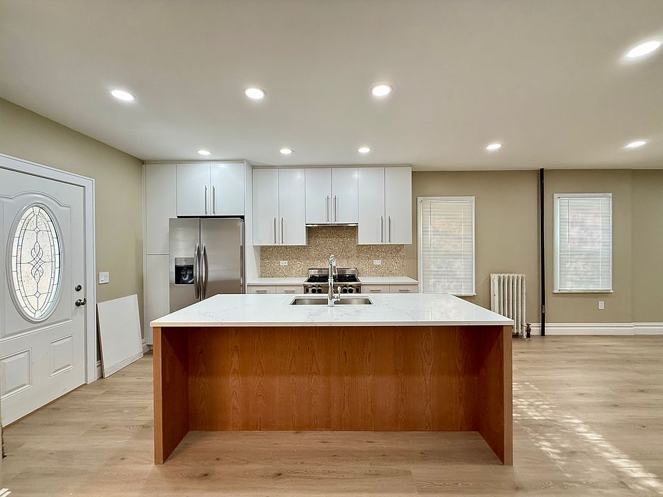 Luxurious remodeled single family home! Bedrooms feature built in closets, brand new modern kitchen with an island, new flooring throughout and walkout basement.
