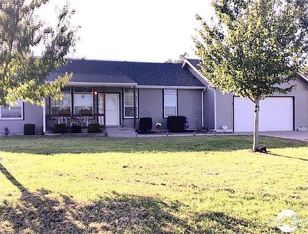 Ranch home with great access to Lee's Summit, and Raymore areas. Perfect size for anyone looking for one level living and big yard, tall ceilings. Nice big kitchen with eat in dining room. Bedrooms are seperated with Master on one end, and 2 other bedrooms and bathrooms on the other end. Laundry off kitchen and nice big 2 car attached garage. Nice big yard with Tuff Shed and huge, sturdy playset. Third driveway on the side of the home is for RV PARKING. Sit on your front porch and look at the corn field!