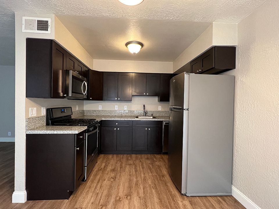 Remodeled unit in quiet neighborhood, separated from busy streets. The kitchen and bath were remodeled in 2023. The kitchen and bath have granite countertops. The flooring looks like hardwood and is water resistant. The walls have been painted with attractive colors providing a nice contrast to the large baseboards. The floor plan includes a large living room and dining area adjacent to the kitchen. Only one neighbor shares a wall with this unit and there are no neighbors above or below. A private yard (fences) will be installed by the end of May. Renter is responsible for the payment of gas (and hot water), electric, and trash removal utilities. The hot water is billed to the renter along with trash removal at a set fee of $30 per month. That amount may adjust after the first year in conjunction with actual costs.