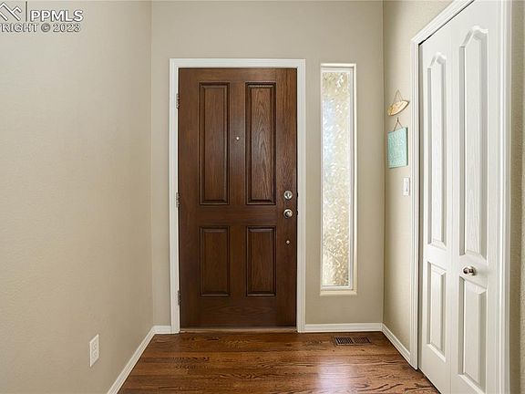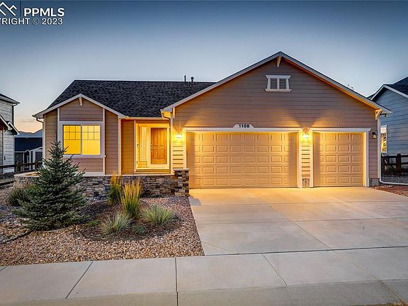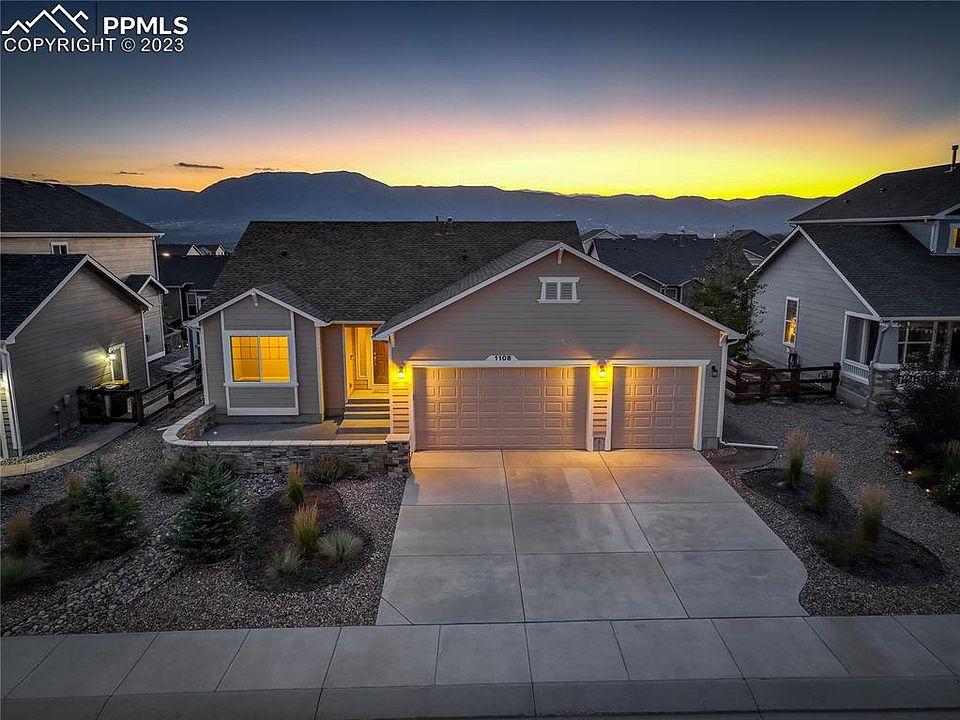 Mountain views, an open floor plan, and more than 2,800 square feet of living space combine to make this 2017 rancher a move-in ready dream home. This 4 bedroom, 3 bath home makes main level living a breeze with real hardwood floors, a gas fireplace in the living room, a convenient entry closet, and vaulted ceilings. The comfortable living room opens into the gourmet kitchen, where you’ll find granite counters, stainless steel Maytag appliances, a boomerang island, a pantry, and a roomy breakfast nook. From the breakfast nook, walk out onto the large patio to enjoy views of the Front Range and the fully-fenced yard. A beautiful archway separates the kitchen from the formal dining room. The main level also includes two bedrooms, a full bath, and a laundry room with both electric and gas hookups. In the primary bedroom, find vaulted ceilings, breathtaking mountain views, a walk-in closet, and a spacious bathroom with double sinks and a walk-in shower. Downstairs, spread out in the additional family room, the game room, and the two lower-level bedrooms. Between the bedrooms is a nicely updated Jack-and-Jill full bathroom with hall access. With central AC, a whole home humidifier, and a high-efficiency furnace, it’s easy to find comfort in this gorgeous home at any time of year. In the warm months, leverage the efficiency of the Bali brand window solar shades on the west-facing side of the main level. Visit the park just across the street or stay home to enjoy the professionally landscaped, low-maintenance yard, complete with an irrigation system. The three-car garage offers ample storage. Located in the award-winning Lewis Palmer School District and close to a wide range of shopping and dining opportunities, this home truly has it all.