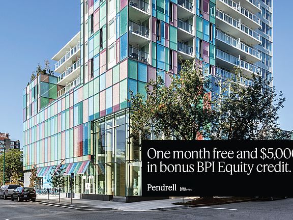 Located in downtown Vancouver's vibrant West End, Pendrell is perched on a tree-lined street just steps from shopping, restaurants, parks and beaches. Transit and Mobi Bike sharing stations can also be found close by, to easily get around the city. Within the building residents enjoy access to several amenities, including a rooftop terrace, community garden, fitness centre, and pet washing station.