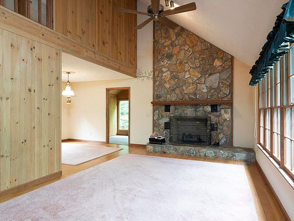 Reduced with all offers Considered. Wonderful rustic traditional home. Sitting on 4.43 acres of landscaped and wooded lots. Two car detached garage with bathroom and full upstairs. Inside the house is a large living room with fireplace, dining room, sun room, master on the main and bath, kitchen and mudroom. Upstairs are 2 bedrooms and a bath. Full basement with wood stove. Being sold AS-IS with no Disclosure.