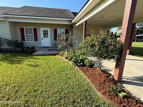 MOVE IN READY! Welcome to this freshly painted 3-bedroom, 2-bathroom home located at the end of a peaceful cul-de-sac. With an open split floor plan and plenty of natural light, this home offers comfort and functionality--perfect for families or first-time buyers. The spacious master bedroom features a vaulted ceiling and a walk-in closet, while the kitchen and master bath include ceramic tile countertops. The laundry room comes with a washer and dryer, and the new central air and heat ensure year-round comfort. On approximately half an acre, step outside to enjoy the large backyard--great for kids, pets, or entertaining--with the added bonus of a covered carport. Located in the St. Martin Parish school district, this home is in a great location to raise a family. Washer/dryer/refrigerator/microwave to stay with home. Air Handler and Condenser were replaced in late 2024. Roof changed in approx. 2021. New water heater in approx. 2017. Come home, relax, and enjoy all this lovely property has to offer!