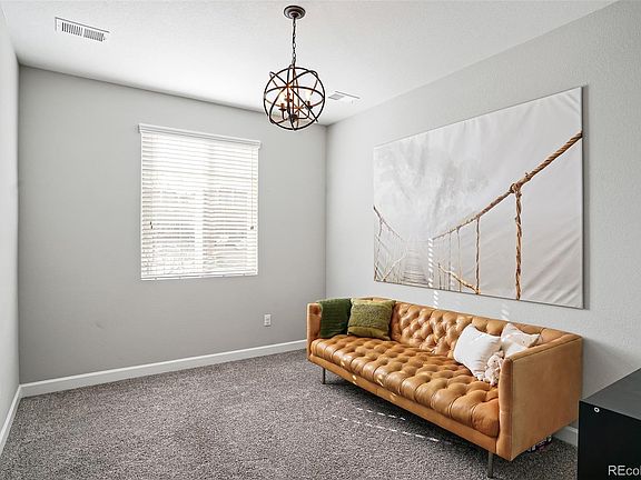 Poised in a prime location, this meticulously maintained Plum Creek Ridge home inspires a blissful escape. Built less than seven years ago, this newer residence is situated on a desirable corner lot w/ easy access to downtown Castle Rock via a scenic trail. An open main floor layout cascades w/ gorgeous natural light and contemporary details. Imagine crafting recipes in a sleek kitchen featuring all-white cabinetry, stainless steel appliances and a center island w/ seating. A modern stacked stone fireplace glows w/ ambiance in the living area. Sliding glass doors open to a covered patio complete w/ a hot tub. Beyond, a spacious backyard unfolds w/ a grassy lawn and privacy fencing. The main level is complete w/ a versatile office or sitting room. One of three sizable bedrooms w/ plush carpeting, a pristine primary suite showcases a serene bath w/ dual vanities. A laundry room w/ a washer and dryer set is an added amenity. Additional storage is found in a large, attached two-car garage.