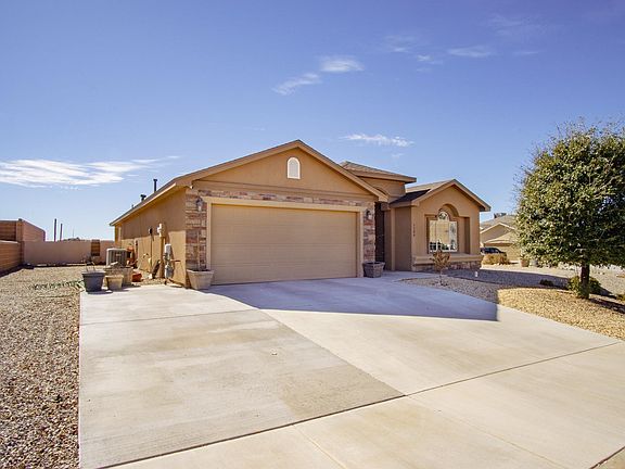 GORGEOUS MOUNTAIN VIEWS!! Check out this showstopper, complete with open concept floor plan, additional space for an office or play area to the left of kitchen island, modern finishes, and stone countertops. Located in the back of the Hermosa El Sol subdivision and no neighbors behind it this home has ample privacy, limited street traffic, and a backdrop that will leave you speechless. The sliding back door creates a seamless transition to the beautiful backyard and fire pit perfect for entertaining friends or family. The backyard is fully landscaped and requires minimal routine maintenance. To top it all off this community has a playground just down the street! Don't miss the opportunity to see this home!