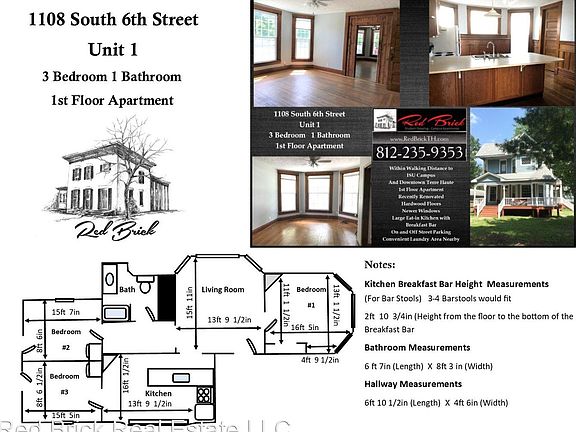 This is a 3 bedroom, 1.0 bathroom, apartment home. This home is located at 1108 S 6th St APT 1, Terre Haute, IN 47802.