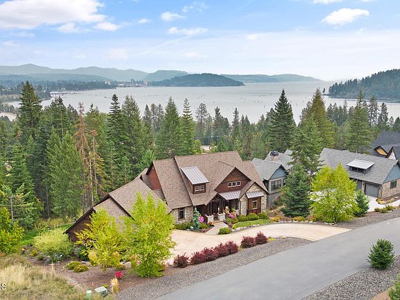 Exceptional views with great southern exposure of Lake Coeur d' Alene. The Ridge at Cougar Bay. This picturesque development set just above a nature reserve. So you'll never have to worry about anyone building and blocking your views! Conveniently located 2 miles to downtown Coeur d' Alene. The well-proportioned living space offers 2 levels with a total of 4,227 sf. 5 bedrooms, 4 bathrooms, 3 bonus rooms, a home office, and a 3 car garage. Well designed with modern aesthetics, high-quality craftsmanship and a unifying sense of space. The kitchen was designed to integrate seamlessly with the main room. Vaulted ceilings with recessed accents. You'll find impeccable millwork in every door, molding, trim, floors and custom built-in shelving in the home office. Both levels offer 2 stone fireplaces. The Impressive bank of craftsman transom style windows tie it all together, bringing the outside in with all the natural light. Please see photos description for more details and video tou