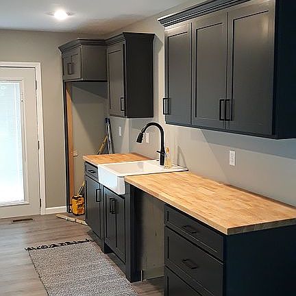 This house has been gutted to the studs and every thing is new, siding, windows, electrical, plumbing, ac- heat pump, insulated, new laminate flooring and tile, custom cabinets with butcher block counter tops, and every inch of storage