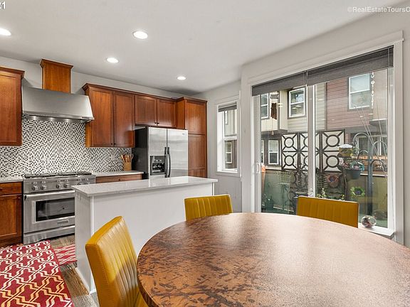 Stunning designer decorated contemporary townhome in the heart of Sellwood! Hardwood floors, high ceilings, stunning fixtures! Remodeled kitchen w/ quartz counters, chef's range, tile backsplash. Dual Master Suites upstairs, completely remodeled baths with checkerboard marble floors, designer wallpaper. Lower level bedroom/office w/ separate entrance. Attached 2 car garage. Sliding doors to back deck. Walk/bike to all Sellwood has to offer!