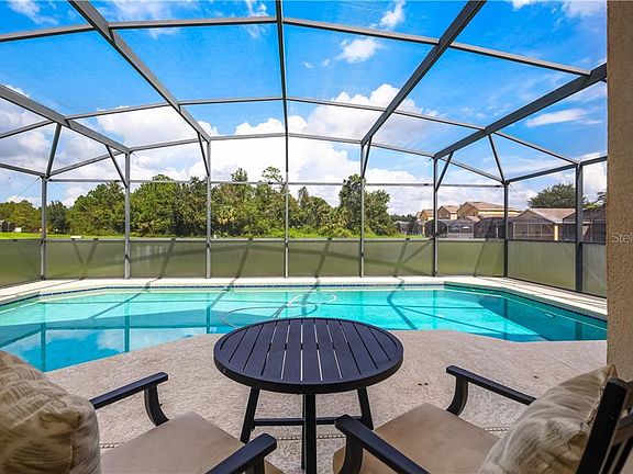 This beautiful 5 bedroom 3 bathroom home is perfect for use as a vacation home, investment property or a primary residence. If you are looking for a pool home with no rear neighbors and a great view then look no further! This wonderful home is located on a fantastic lot overlooking the pond and wooded area and comes with its own private heated pool and screened in lanai and pool deck. Check out the drone shots to see how great the view is that you could wake up to every morning. The interior of this spacious home has been upgraded with laminate floors throughout the hall and living and dining room area. There are 2 master en-suite bedrooms, one with a large walk in closet. The kitchen is bright and spacious and has upgraded appliances. This community HOA provides basic TV and lawn care services. Come and view this stunning 5 bedroom 3 bathroom pool home located just a short drive from Champions Gate, Celebration, Reunion, Disney and access to the I4.