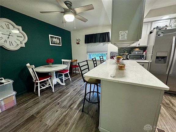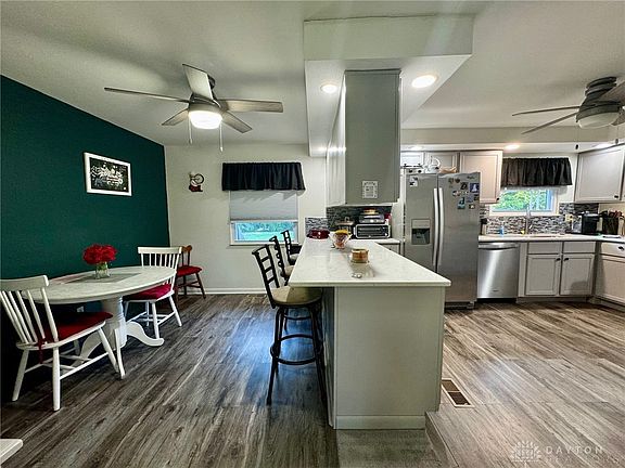Welcome to this lovely ranch in north Springfield! This stunning ranch is loaded with updates! The home has an updated kitchen with Quartz countertops, new cabinets, and vinyl plank flooring and the sellers are including the gas range, refrigerator, dishwasher, and built-in microwave in the sale. The kitchen is complete with an eat-in area which includes a breakfast bar and stools. The house sits on a slab and the washer and dryer as well as furnace and hot water are in closets off of the kitchen nicely tucked behind sliding doors. The kitchen opens to the family room with sliding doors to a spacious covered patio overlooking a fully fenced and private backyard. The house has been updated with new windows and the natural lighting just lights up the spacious living room. There is also a front porch! The home has 4 bedrooms and two baths. The main bath in the hall has recently been updated with a new vanity, a taller toilet, newer flooring, and a step-in shower. The main bedroom has a private bath that includes a step-in shower and double closets. The Furnace was replaced recently, and the house is cooled with central air, you’ll notice ceiling fans in nearly every room for that extra comfort! There is a 2-car garage with an updated garage door. It is conveniently located mere moments from the Simon Kenton Trail/ bike path, and 1.2 miles to State Rt 72 which turns into State Route 68 for easy highway access. There is grocery shopping and some restaurants nearby. The Clarence J Brown Reservoir is 4.2 miles away with scenic hiking, boating, camping, wildlife viewing and so much more! Call to see this spacious ranch for yourself!