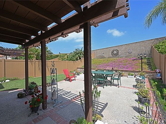 Wonderful opportunity to own 3 bedrooms / 3 bathroom property in the highly sought after Las Brisas community. This fabulous property has a large back yard and offers numerous upgrades and amenities including: a remodeled kitchen with granite countertops and backsplash, custom cabinetry with detailed glass doors & hardware, stainless steel appliances, crown molding, recessed lighting plus barstool seating, open to family room with vaulted ceiling, gas log fireplace with mantle and granite facing and hearth, downstairs bedroom with ceiling fan and window blinds, full bath downstairs with corian countertops, 2 bedrooms and 2 bathrooms upstairs with the primary bedroom offering 2 closets including a walk in plus mirrored wardrobe doors, primary bath offers dual sinks & a beautiful tiled shower with glass doors, gorgeous laminate flooring, window blinds, a 2 car attached garage with epoxy flooring and built in cabinets, enjoy a spacious backyard with a covered patio, artificial grass and vinyl fencing, along with an association pool, spa and common RV storage(at an additional cost), no mello roos and award winning schools.
