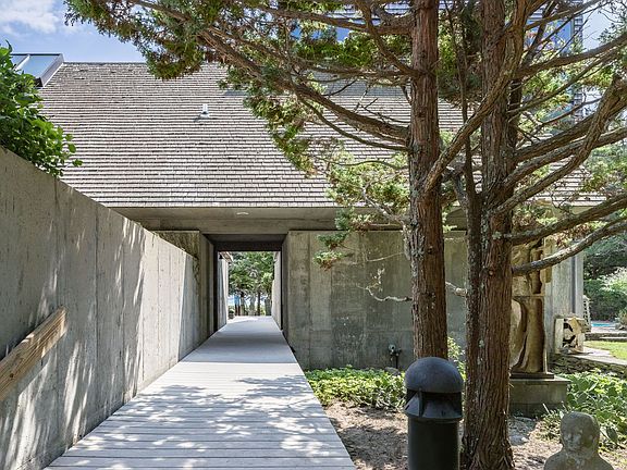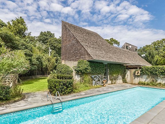 Inspiration abounds at this rare waterfront artist's home and studio compound with waterside pool on nearly three acres, in the heart of historic Springs. Designed by noted architect Charles Forberg (architect of Long House in East Hampton & son-in-law of Walter Gropious, master of The Bauhaus School), the main house has a Norman Jaffee meets Japanese vibe, with pitched rooflines and a modern and stylish feel in cedar shake and poured concrete construction. Breathtaking views of Accobonac Harbor and Gerard Drive & Gardiner's Bay greet you immediately upon entry into the lofted great room. Just off the great room is a main floor primary bedroom, en suite, with waterviews and oversized bath with soaking tub and separate shower. A 2nd bedroom on the second level is also ensuite. Adjacent 2 level guest wing, features a large loft-like space, a 3rd Bedroom and a full bath. Plenty of decking and ample lawn to water's edge offer a generous footprint on which to enjoy nature and the water. In ground waterside swimming pool is a plus as well. Next door is a 2400 SF artist's studio (built 2012 by sculptor/owner Phyllis Baker Hammond) with generous light from large glass garage doors and many amenities for makers and artists. Come join the legends on artists' row!