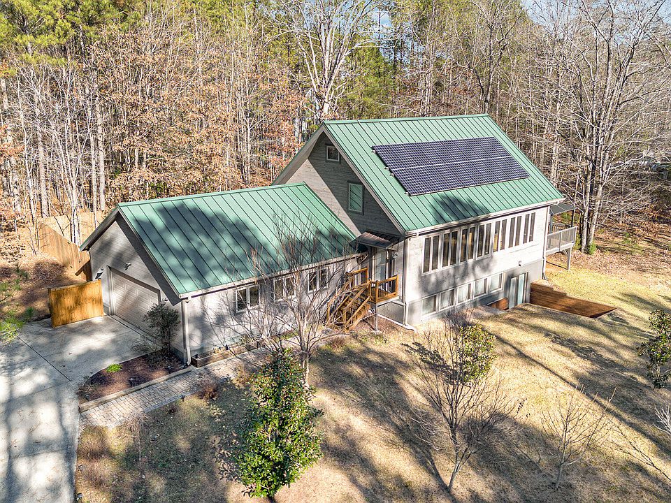 With 1.32 acres nestled close to Falls Lake boating and hiking access, this meticulously maintained passive solar home provides an abundance of space and energy-efficient living. The residence features three generously sized bedrooms, two updated full bathrooms and a half bath, a finished basement, and an open layout perfect for entertaining. The finished basement boasts epoxied floors, a massive full bedroom, ample recreation space for a gym or hangout area, and plenty of storage space. Enjoy low maintenance with the lifetime metal roof and an oversized garage, ideal for projects and a workspace. The home is well designed for outdoor living, showcasing a spacious deck overlooking a fully fenced-in backyard and a sunroom on the front of the house, perfect for lounging during colder months. The builder, Enertia Homes, is renowned for its energy-efficient, durable, and low-maintenance homes.