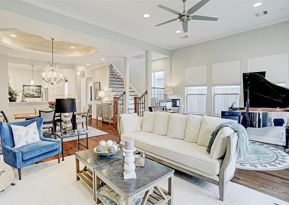 Gorgeous 2014 built Heights Custom w/ high-end luxurious finishes throughout! Walk to park at end of block, pool, restaurants on White Oak and hike and bike path! Lush landscaping w/ sprinkler sys. Home features oak floors, high ceilings, tray ceiling in dining/master, crown mold, CAT 5, surround sound wired, security sys, 16-SEER HVAC, PEX plumbing, opulent lighting, gourmet kitchen, Bosch appliances, beverage fridge and more. Roomy master w/ sitting area and HUGE walk-in closet. Fabulous backyard!