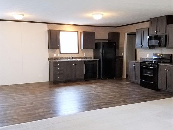 If you love the idea of a home with sleek style, modern appliances, and a gorgeous open floor plan, you MUST SEE this 2018 3B/2B home with us! The front entrance opens into the living space, and there is SO MUCH living space! The carpeted living room has a ceiling fan and, like the rest of the home, is cable ready. To the right is the master suite - more on this later! - and to the front is the kitchen, dining room, and den all with beautiful wood-style vinyl flooring. The crisp white is balanced with deep brown trim and cabinetry throughout the home for a chic design. The kitchen has a convenient L-shaped configuration with loads of cabinet space while allowing the open space flow of the home to be uninterrupted. Black appliances - stove, fridge, washer, and dryer - are all less than one year old. Off the kitchen is the rear exit in a mud/utility room with shelving already present and hook-ups for a washer and gas *or* electric dryer. With no walls to intrude, the dining and den spaces can be divided up any way you like - your imagination and needs are your only boundaries! Off the den is a small alcove with entrances to two additional bedrooms and the guest bathroom - with no long hallway to take up space, every bit of this floor plan is usable space for you! Both bedrooms have closet space, the guest bath has a matching medicine cabinet installed, and there's even a linen/coat closet ready to give you a little extra storage. Speaking of storage, let's talk master suite! The bedroom includes a ceiling fan, and the walk-in closet will be your favorite feature in this room! Vinyl flooring for easy cleaning, shelves for hanging and storage along two walls and then the gem - a four-unit shelving unit for extra storage of those folded, loose, or bulky items! The master bath will also make you feel spoiled. Vanity lighting, an extended vanity, and tons of under the sink storage will make getting ready a breeze. And a recessed shelving unit saves floor space while adding so much extra room for storing items and personalizing the space. Outside are two reserved parking spaces, a landscaped area to beautiful the home, sidewalks to both entrances, and even a small amount of paved space behind the home - just big enough for a cafe table set to enjoy beautiful nights with privacy! Royal Highlander MHC has been under new ownership and management since September 2016. With great access to the city, on a CityLink bus route, and being served by a great school system, you will love the independence and convenience of living in our community. Just minutes from everything Peoria has to offer in dining, shopping, and entertainment. Great school district, great location, and great prices! Great home. Great community. Great location. What are you waiting for?? Contact us today to schedule your showing, and ask about our purchase options! One or two year lease. Trash included. Ask about our pet policy.