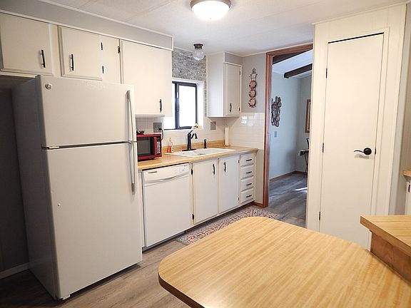 Beautiful remodeled manufactured home in Woodland Meadows. Large living room with wood burning fireplace. Kitchen has breakfast bar, electric stove, dishwasher and refrigerator. Laundry are includes the washer and dryer with a small office are nearby. Master Bathroom has been completely remodeled ! Spacious and inviting as is the Master bedroom. Guest bathroom has also been remodeled. Almost new laminate flooring. Many upgrades such as plumbing, carpet, light fixtures and window treatments. Storage shed, 2 car carport, fenced yard, covered patio and fully furnished (exception is the dining room table and chairs) make this home move-in ready.