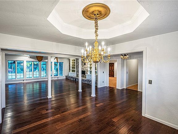 This Oak Tree home sits on a corner lot and features a beautiful Arcadia stone exterior with well established landscaping. With a circle drive in the front and a private drive in the back this home has lots of parking available for entertaining. The large living area features a gas log fireplace with builtin bookcases, vaulted ceilings, dual headed ceiling fan, plantation shutters, and a wet bar with wine fridge and ice maker. The kitchen features a large center island, Bosch double ovens (1-convection), 5 burner gas range, trash compactor, warming drawer, and more. The master suite is large, with part of the master closet being a safe room with access from both inside the master closet and outside, it also features a toilet and spigot for drinking water. One large room with skylight could be an office, theater room, game room, or 2nd living. Bedroom 2 & 3 have a Jack and Jill bathroom. This home has tons of storage and is ready to be yours.