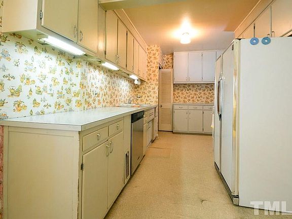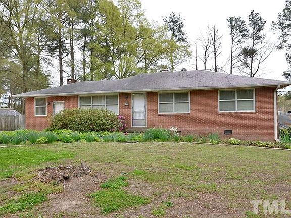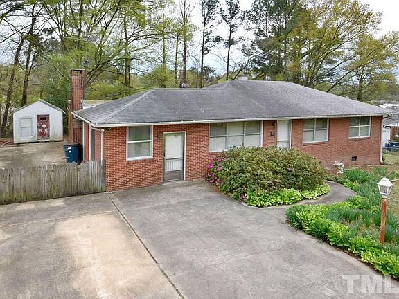 First time home buyers or Investors looking for a all brick ranch home with a large family room featuring a brick fireplace, curved bar with Jenn-Air stove, 3 bedrooms, two full baths, laundry/utility room, living/dinning combo, kitchen with a Caloric gas range and the refrigerator remains. Great flat fenced yard , double concrete driveway, with electrically wired storage / work shop . Located in Wellons Village, only a short drive to the RTP and Down Town Durham.This property is purchased AS IS.