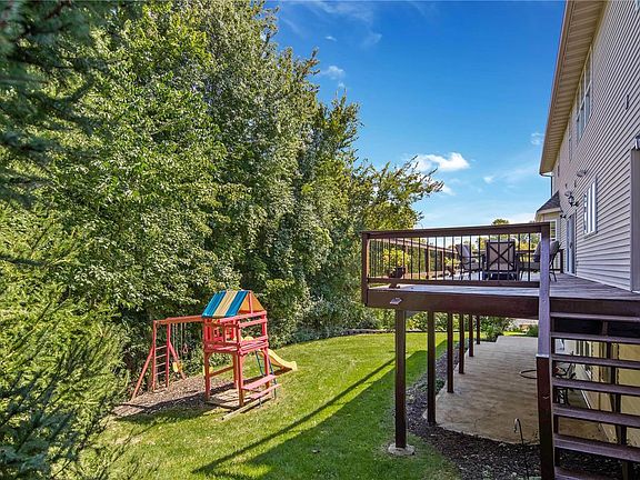 You wont want to miss this stunning 2 story on a private lot. 2 story entry opens to a den/study with bay window, wood floors and double doors. Generous sized dining room with wood floors and updated chandelier. The great room has bay windows, blinds, stone fireplace with gas logs and wood floors. The kitchen is the heart of the home with a large center island, granite countertops, stainless appliances, custom cabinets, gas cooktop and adjoining breakfast room with access to the deck. Luxury master suite with coffered ceiling and beautiful bath with jacuzzi tub, walk-in shower, and walk-in closet with custom shelving. The upper level boast a 2nd laundry room, loft, 3 bedrooms, Jack & Jill and private bath. Finished walkout lower level with rec room, full bath and 5th bedrooms or exercise room. Charming neutral decor throughout & 9 ft ceilings on main, upper, and lower levels. 3 car side entry garage, deck, patio and more!
