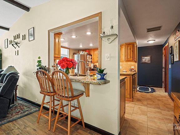 Million-dollar view at a fraction of the cost! This charming home provides stunning views of the Boise Mountains and the valley! Located on a quiet cul-de-sac on the private back side of Canyon Hill. New and improved features include new wood flooring, carpet, gutters, a rebuilt fireplace, and upgraded window coverings including plantation wood shutters. Loaded with many features that included a gourmet kitchen with granite countertops, leading you into the spacious formal living and dining room. Both full bathrooms include double vanities with sky lighting and a brick archway facade. The exterior of the home offers a circular driveway with a pull-through 2-car garage and RV parking space. Enjoy your afternoons on the large wooden deck located in the backyard, with plenty of gardening space, a pond, and extensive landscaping. This place has it all!
