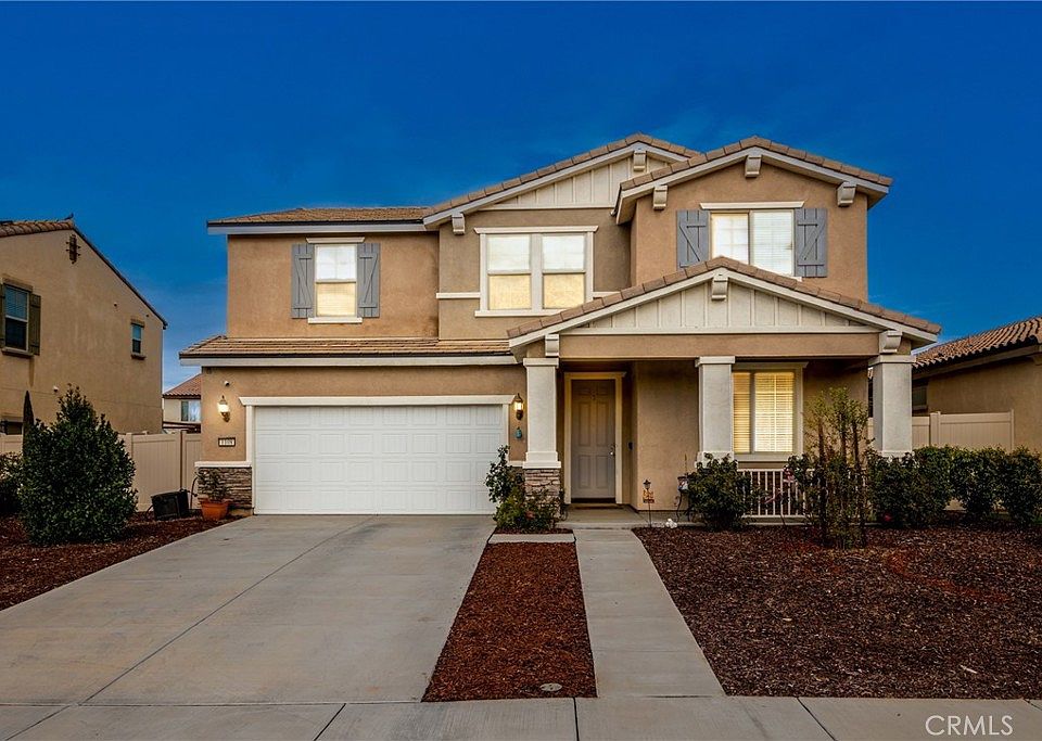 Welcome to this stunning, better-than-new 5-bedroom, 3-bathroom home, PLUS a Den & LOFT—perfectly designed for today’s growing family and move-in ready! Built with modern living in mind, this spacious residence offers the ideal blend of comfort and functionality. The open-concept layout features a generous living room pre-wired for surround sound (including a dedicated subwoofer plug) and flows seamlessly into the rest of the main level. A highly desirable downstairs bedroom and full bathroom provide the perfect guest suite, in-law quarters, or home office for those who prefer single-level living. Step outside to your private backyard oasis: a massive 14-foot-wide covered concrete patio spans the entire length of the home, overlooking a freshly seeded lawn with brand-new irrigation—ready for summer barbecues, playtime, or quiet evenings under the stars.Upstairs, you’ll find a spacious loft that makes an ideal second living area, playroom, or teen hangout. The secondary bedrooms are generously sized with plush, double-padded carpeting that still looks and feels like new. The luxurious primary suite boasts a spa-like bathroom with dual vanities and an oversized L-shaped walk-in closet complete with built-in organizers.
