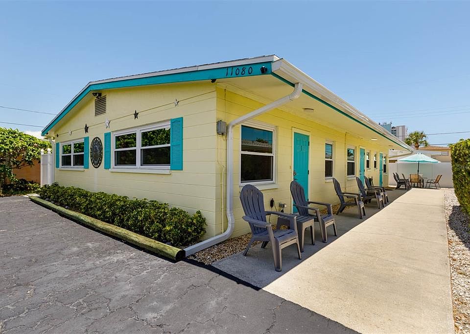Look no further for the perfect investment property located on one of America's top beaches, Treasure Island. The beautiful Gulf beaches of Treasure Island generate visitors year-round, making this an amazing opportunity to generate some cash flow! Two of the three units offer 1 bed and 1 bath, while the "owners unit" provides 2 bedrooms and 1 bath. This well-appointed triplex has been updated to exhume a modern yet beachy lifestyle and promote endless days of fun in the sun and sand. It was completely updated with a new roof (2019), mini-AC splits, hurricane impact windows, new full-size appliances, paint inside and out, new landscaping, cabinets and so much more (2021). Each unit is being sold furnished and turnkey so you can head directly to the beach! Another fabulous perk of your investment is that you're a short walk to the beach, restaurants, bars, shops, grocery stores, and more. John's Pass Village is only 1.2 miles away. You will absolutely love living here while renting out the other 2 units... or rent all three for even more generated income! There are separate electric meters for each unit along with ample parking in front of the property. The outdoor eating area and grill offer activities for you and/or your guests. There is coin laundry on site also, along with some beach must-haves to add that extra touch renters are looking for.