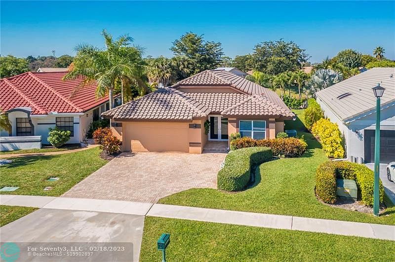 Gorgeous, completely remodeled 2bd/2ba lake view single family home with 2 car garage located in Boca Woods, man gated community. Property features: beautiful marble floors throughout, open floor plan, large living room, very spacious bedrooms with plenty of closet space, gorgeous kitchen cabinets, stainless steel appliances & granite counter tops. Hot Tub. Screened patio. Impact windows & doors. The backyard is very private. Club amenities include: 7 Har Tru tennis courts, lighted putting green & chipping green, driving range, pickle ball, two restaurants & new state of the art spa/gym.