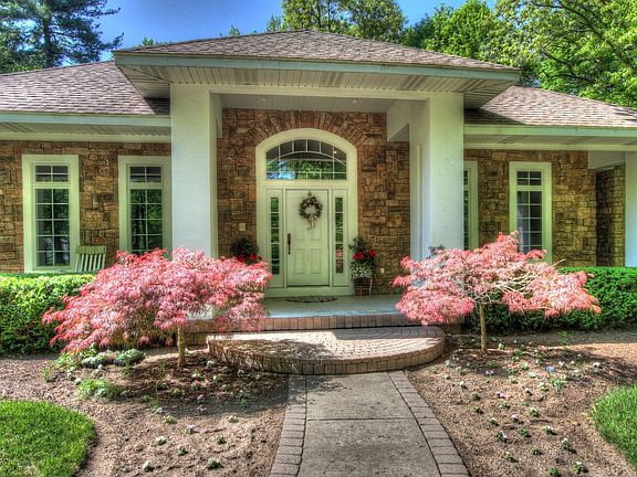Exceptional custom built home on 2 acres is offered at such an incredible value. Follow the deep driveway past towering hardwoods into your own exquisite mini country estate nestled back onto peaceful gently rolling grounds. Circle around the Stone front entry with pillared covered porch inviting you in with gracious Southern like appeal. One of a kind design and impressive detail. Amazing fit & finishes, stunning moulding & trim, fine furniture grade built ins throughout, yet a comfortable elegant style. Elevated ceilings & beautiful windows. Impressive kitchen/eating area and island opens to charming 3 season porch connecting to generous sized deck, maintenance free. Wonderful Master bedroom suite with luxurious bathroom &huge closet. Great office/