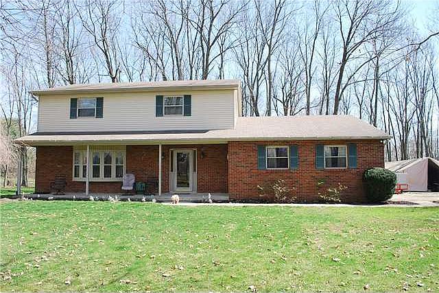 back on the market...buyers financing fell through again. Approved Bank short sale at $112k. Buyer must assume the sewer assessment. (See Auditor for more info) Call agent for more detail. Gorgeous 1.55 acre wooded lot. Trad. flr plan w/finshed lower level including rec. rm & possible 5th bedroom. Huge living rm w/bayed picture window, fam rm w/brick hearth fireplace. See A2A remarks.