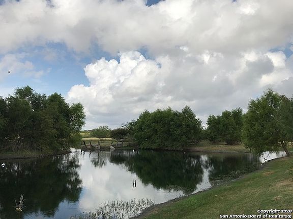 ALMOST 3 ACRE LAKE WITH HUGE CATFISH, SUNFISH, BIG BASS AND MAYBE SOME CRAPPIE TOO!. 7.1 ACRES PER NEW SURVEY (OLD SAID 8.1) BUT INCLUDES DRIVE THAT NEIGHBORS HAVE DEEDED RIGHT AWAY ALSO. HIDDEN AND PRIVATE. NO HOA, NO RESTRICTIONS. OLD MOBILE HOME ON PROPERTY IS LIVABLE BUT NO VALUE AND SELLER WILL NOT LET ANYONE IN UNTIL UNDER CONTRACT. SELLER WILL LEAVE ALL THE FARM EQUIPMENT INCLUDING A TRACTOR, END LOADER, ALL IMPLEMENTS, RIDING MOWER AND MUCH MORE. THERE ARE SEVERAL OUT BUILDINGS INCLUDING A BIG OPEN FACE WORKSHOP. WOULD MAKE A GREAT ESCAPE FROM THE HUSTLE AND BUSTLE OF THE CITY, BUILD YOUR DREAM HOME ON THE LAKE, MAKE IT A COMPANY OR OTHER RETREAT AND TAKE THE TAX DEDUCTION. LARGER LAKE HAS CLAY BOTTOM AND IS LITTLE LOW NOW BUT STILL DEEP ENOUGH FOR FISH. SMALLER LAKE (THUMB PRINT HE CALLS IT) DOES NOT HAVE CLAY BOTTOM AND LOSES WATER FASTER BUT STILL HAS WATER EVEN NOW. OLD WELL ON THE PROPERTY HAS NOT BEEN USED IN YEARS BUT PROBABLY CAN BE CLEAN AND MADE USABLE AND WOULD BE GREAT TO KEEP LAKE FULL EVEN DURING DRY TIMES. THERE IS A 0LD 5000 GALLON WATER CISTERN ON THE PROPERTY AS WELL. MAKE A GREAT PLACE FOR YOUR BUSINESS, YOUR LUXURY HOME, YOUR ESCAPE AND WHATEVER YOU CAN THINK OF. ONLY ABOUT 8 MINUTES TO RANDOLPH, 5 TO 8 MINUTES TO I-10, SHORT DRIVE TO LACKLAND AND NEW BRAUNFELS, AND DOWNTOWN SAN ANTONIO.