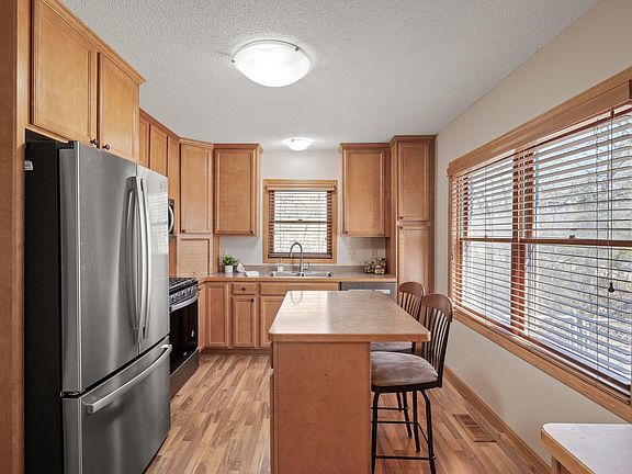 Nestled in Lakeville's serene locale, this charming 3-level split home is a hidden gem. It’s updated kitchen boasts a center island, ample cabinet and counter space, and a separate dining area leading to a cozy sun porch. Upstairs features a spacious living room, 2 sizable bedrooms including a primary with private bath, and a second full bath, all adorned with ceramic tile. A clever upper hallway closet offers expansive storage expanding over the entire dining area. The lower level hosts a family room, an additional bedroom, a 3/4 bath and abundant storage. Outside, a sprawling lot with partial fencing showcases 14 majestic Oak Trees. Enjoy city sewer and water, with a well water option for outdoor use. The insulated second garage stall, with a removable non-load bearing wall, adds versatility to this delightful property. Many updates done for you! 8x6 storage shed. Conveniently positioned near shopping, dining, and the freeway.