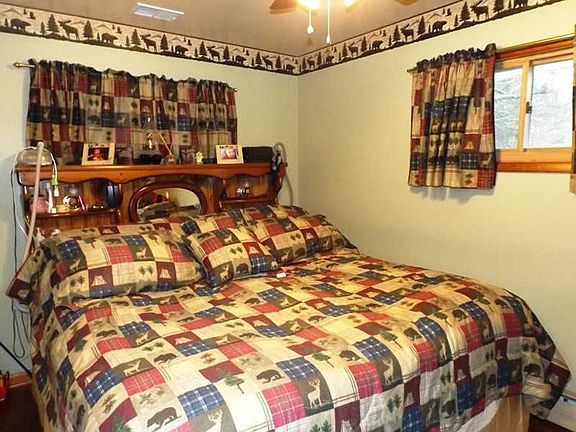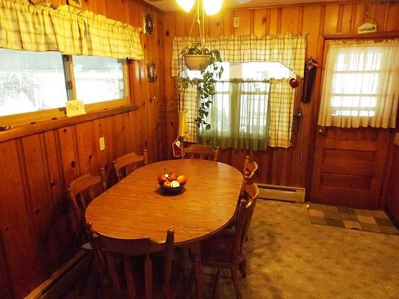 Situated on 4 Lots, this 2 bedroom, 1 bath, Lake cabin features knotty pine paneling and hardwood floors, as well as beautiful built in cabinetry and shelves. New boiler furnace in 2010 and central air added in 2012 and new wiring throughout. A large outbuilding houses the mechanicals, including the boiler. A convenient RV Hookup is located near the carport.
