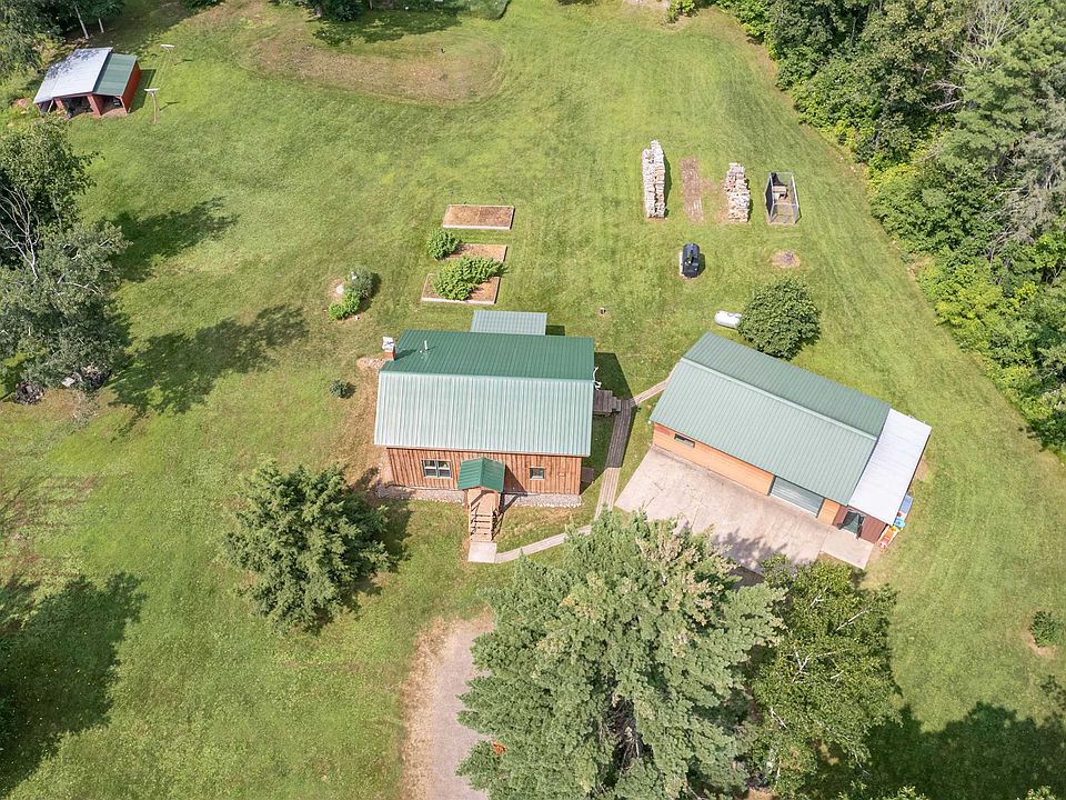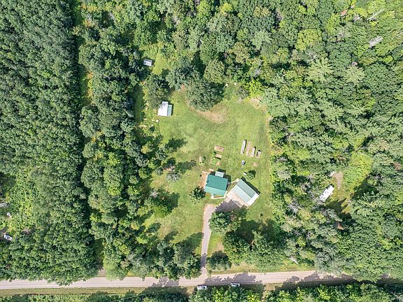 Storybook, Picturesque and Serene Homestead! Sitting on 5 acres, and down a private driveway this 4 bdrm/2 bath home is tucked amongst mature trees, has multiple outbuildings sprawled out on the property including a Guest Cabin with propane heat, and electric, an outdoor wood boiler for the main house, plus a forced air furnace, also a small animal structure, 2 outdoor dog kennels, a Sugar Shack for making Maple syrup, and a 3 car garage. Hobby Farm? Many gardens too, plus... this property abutts a snowmobile trail and ATV trails!! Going inside the home, on the main level you will notice the real glistening hardwood floors throughout, tongue and groove ceilings, HUGE living room and Kitchen, laundry room, and a primary bedroom with en-suite. There is also a wonderful 3 season porch of off the back too! Upstairs are 3 more bedrooms and a second bath. Seller's are also including a log splitter, 75 in professional installed Samsung TV, and Starlink Internet equipment.
