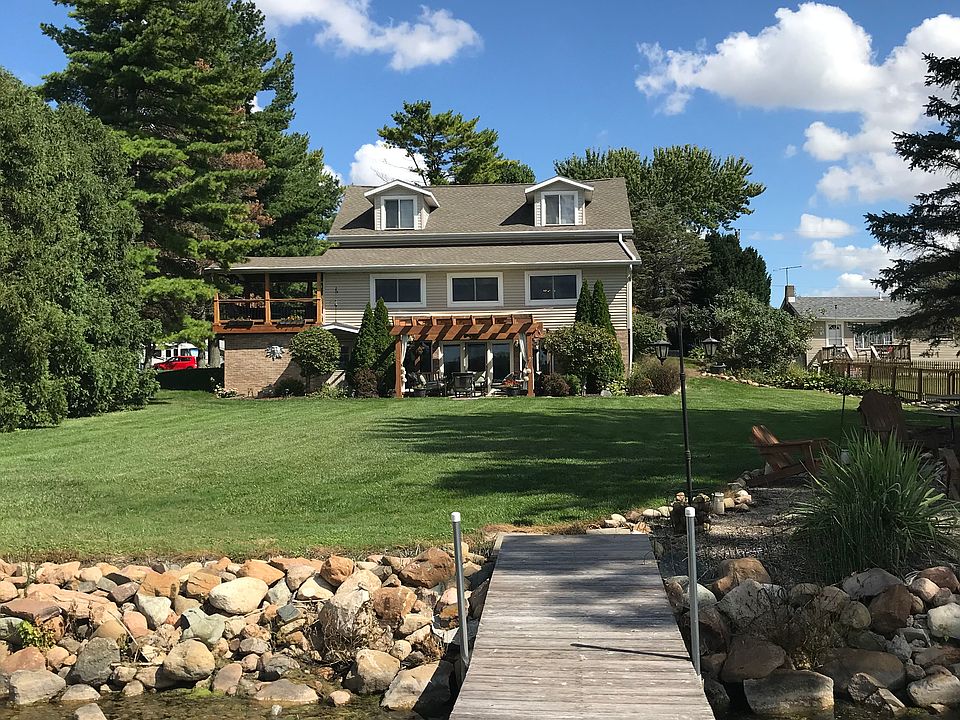 When you picture a Lake Home this is what comes to mind! This home is spacious enough for you, your family and friends with the added bonus of 95 ft of lake frontage complete with spectacular views and beautiful sunsets. This home has 3 levels (all with lake views) & features 4 bedrooms (includes and upper dormer are currently used as 2 bedrooms) 2 baths with large dining room and living room and family room with gas log fireplace, sunroom, wood deck, open front porch and a 2 car detached garage.