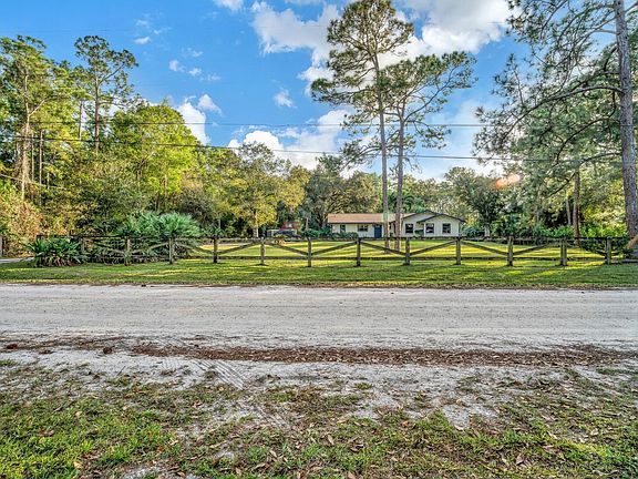 This beautiful 4/2 home sits high and dry on 1.25 acres. It was fully renovated in 2020. The renovation included new tile floors throughout, new kitchen (updated layout with large island, new cabinets, granite and appliances), updated primary bath, fresh exterior and interior paint. Most systems were also replaced in 2020: water heater, electrical panel, AC and AC ductwork, flat roof. 2022 new well drilled, 2024 new well pump. Property is fully fenced with an outbuilding that could serve as a garage, workshop or barn. This outbuilding has a 1/1 apartment on the second level. Park your trucks, store your boats- no HOA restrictions.