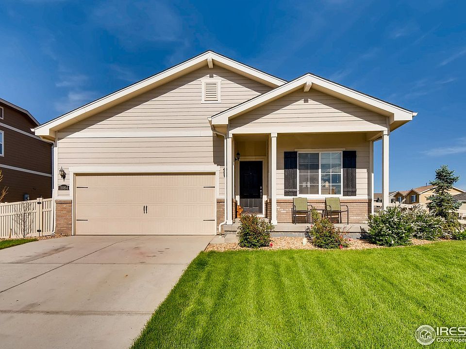 You'll love this fantastic single-story home perched on a corner lot in the Shores! Built in 2016, this open-concept home offers 3 generously-sized bedrooms, a formal dining room and an unfinished basement. The welcoming entryway opens to scratch-resistant laminate flooring, abundant natural light and neutral tones, ideal for any decor. The clean and well-kept kitchen is equipped with stainless steel appliances and plentiful storage space. The master suite delights with backyard views, a walk-in closet and ensuite bathroom. The freshly landscaped backyard, accessed via sliding glass doors off the living room, is the perfect placed to soak in some of Colorado's sunshine or to play fetch with Fido. Enjoy the community park with pavilion and playground. The convenient location provides easy access to I-25 and is within walking distance to Imagine Charter School!