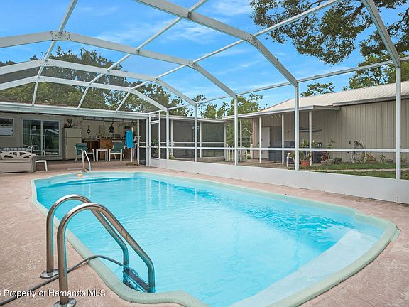 Active Under Contract - Accepting Back Up Offers EVERYTHING on 1.7 acres nestled up against over 1,000+ acres of state land!! 3/2 HOME + PRIVATE POOL + LARGE DETACHED METAL BUILDING/WORKSHOP (30x36) WITH AIR CONDITIONED OFFICE + GREENHOUSE + CARPORT + MORE OUTBUILDINGS + PROPERTY IS FENCED WITH AN ELECTRIC GATE! Seller has operated is auto repair business from the workshop for decades! The property has so much to offer! Home has 2 beds and 1 bathroom in the main part of the home. A mother-in-law addition was added with 1 bedroom + 1 bathroom + large living room + inside laundry room! This makes the home a 3/2! Private pool with large, covered lanai for entertaining the family and your friends! Looking for a property with a LARGE metal outbuilding set up for auto repair inside and has a little bit of everything...here it is! Yard has a sprinkler system. Well and Septic. 2 car carport. Never have a rear neighbor as the property backup to the sprawling Chassahowitzka Wildlife Management Area...go for long walks/hikes everyday! NO HOA...so bring your RV, camper, boat, ATV's...and your toys! Both AC units were replaced in 2018. Lots of storage sheds. Place to store you boat with its own fish cleaning station! Original single-wide 1974. Residential addition added in 1990 converting it to a single family home. Pool added in 1998. CASH ONLY. Located just west of US 19 near the intersection of US 19 and Hexam. Minutes to Weeki Wachee State Park, Buccaneer Bay Water Park, kayaking down the crystal clear Weeki Wachee River, beach and sunsets at Pine Island, boating and fishing in the Gulf of Mexico off Hernando Beach. Close to groceries, shopping, restaurants, movies. Zoned for the county's newest schools...Winding Waters and Weeki Wachee High School. 15 minutes to the Suncoast Parkway for quick and easy access to Tampa for work and play!