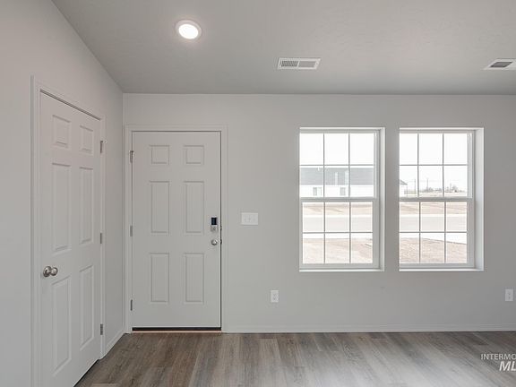 The Ruby 1413 | The entry opens up to a vaulted spacious living and dining room area with the kitchen and nook on one side of the home and three bedrooms. Master bedroom features walk-in closet. Photos are of actual home.
